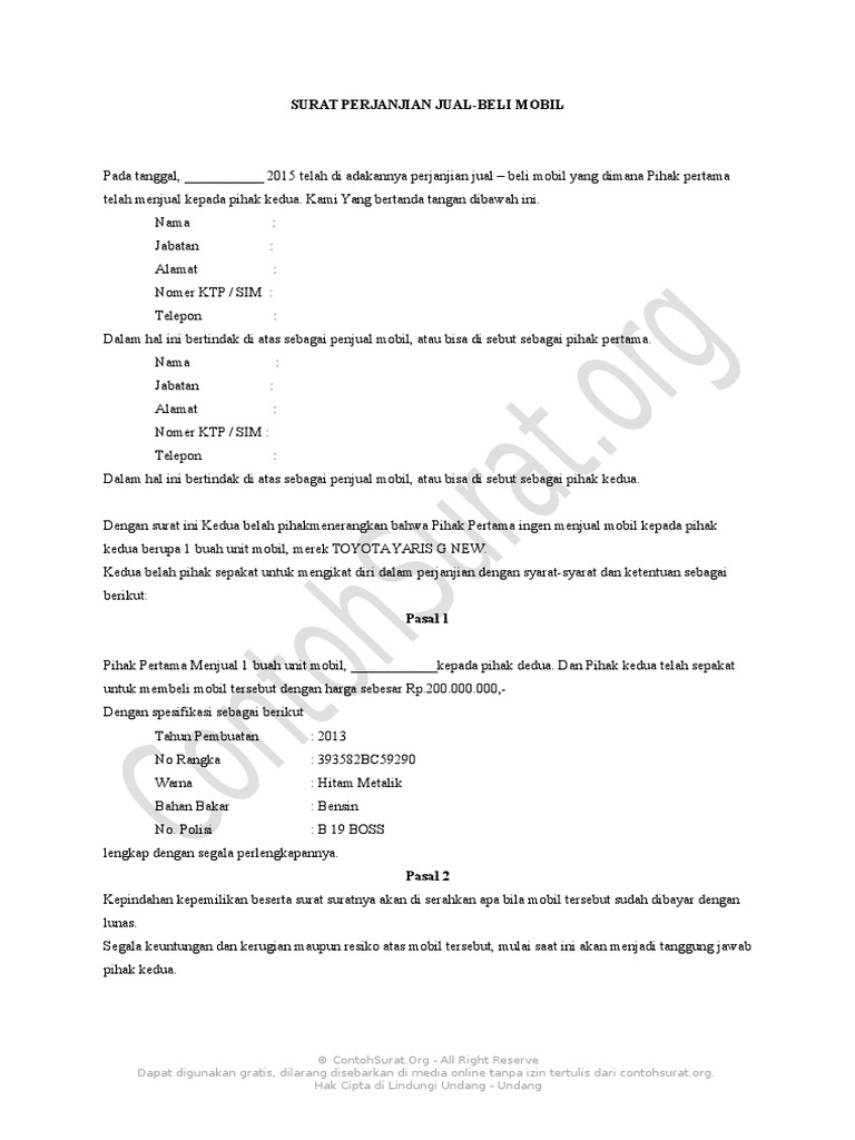19 Contoh Surat Jaminan Motor from imgv2-1-f.scribdassets.com Contoh surat bisnis, surat dinas, surat izin, surat kuasa, surat lamaran kerja, surat pemberitahuan, surat penawaran, surat pengunduran diri, surat peringatan, surat perjanjian, surat pernyataan, surat resmi, surat undangan. Sebuah perjanjian merupakan sebuah kesepakatan yang dilakukan oleh dua orang atau lebih. Surat perjanjian hutang merupakan sebuah surat yang sangat penting untuk memberikan informasi bahwa pada tanggal dan di tempat waktu tertentu kedua belah pihak telah melakukan kesepakatan mengenai peminjaman uang. Surat tersebut juga nantinya akan ditanda tangani oleh seseorang yang. Dalam membuat surat perjanjian ini, pastikan anda tahu akan berurusan dengan siapa dan. Namun masih banyak orang yang belum mengerti apa itu surat perjanjian, belum pernah membuat surat perjanjian, bahkan belum pernah. Dengan adanya surat perjanjian diantara kedua belah pihak, sudah tentu jika terjadi suatu penyimpangan sesuai perjanjian, anda bisa membawanya ke ranah hukum. Yang bertanda tangan di bawah ini setuju mengadakan perjanjian utang piutang yaitu yang bertandatangan di bawah ini sebagai pihak pertama